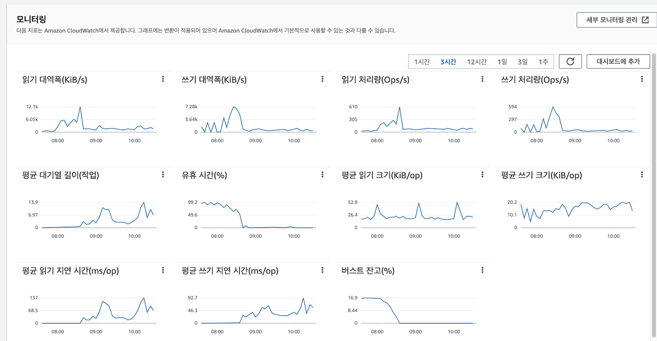 IOPS를 더 올려도 되지만, 3000이면 충분할 듯 하여 우선 gp3로만 변경함