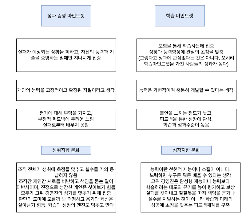 - 회사는 직원이 실수하고 실패했을때 그 일로 교훈을 얻을 기회를 주는 대신 잘잘못을 따져 처별하는데 치중