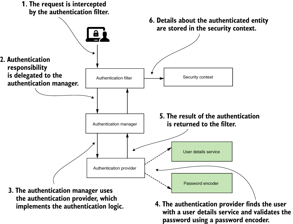 - SecurityContextHolder : 인증된 사용자 세부정보 저장하는 곳. 어떻게 채워지는지는 신경쓰지 않음